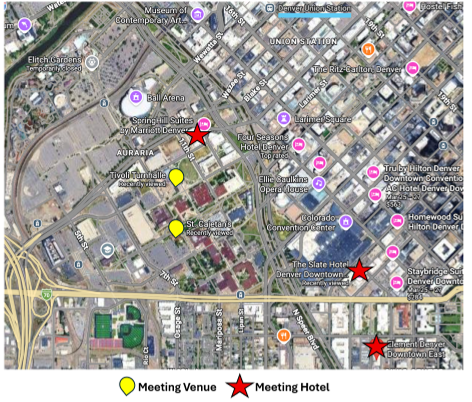 On Auraria Campus, a short walk (~ 5 mins) to meeting locations